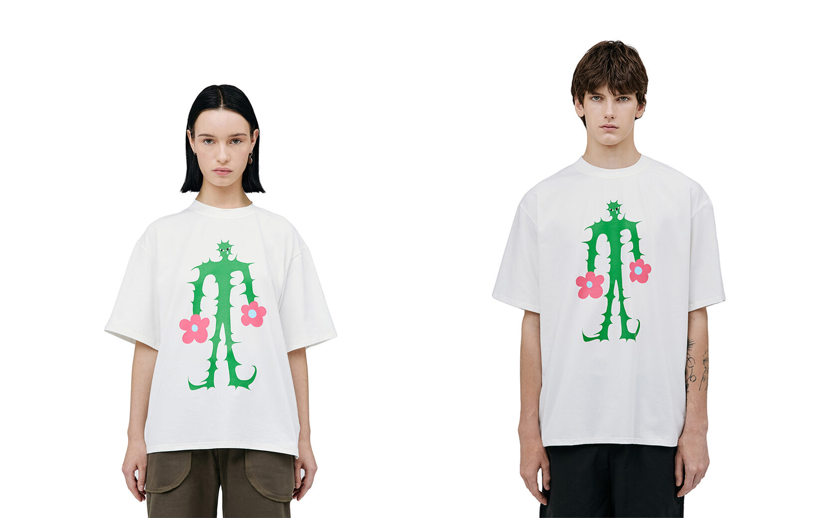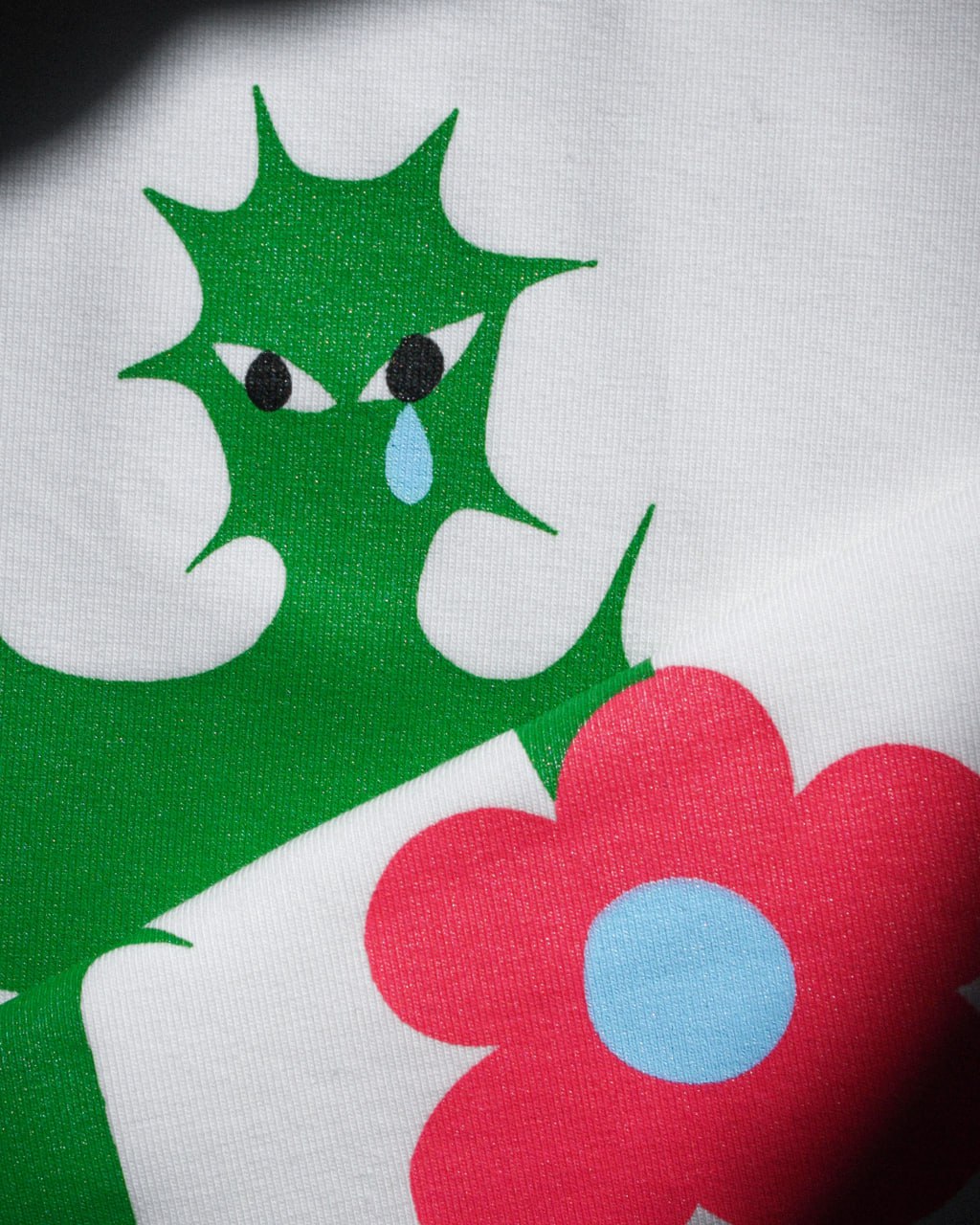 I wanted to tell the story of a very fragile and sensitive character who, in self-defense, covers themselves in thorns. But despite their thorny armor, tender pink flowers bloom instead of fists. It serves as a reminder that anger and aggression are meaningless; salvation can only be found in care and love.